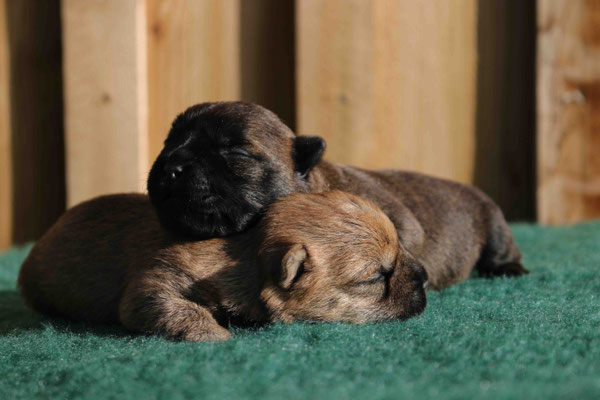 Les chiens sont élevés au sien de notre foyer. Ils reçoivent les soins nécessaires et s'épanouissent au milieu de notre famille. Le Chiot cairn terrier quittera notre foyer lorsqu'il aura atteint un stade minimum dans son évolution. Il pourra ainsi ne pas être sevré trop tôt et pourra acquérir les notions de propreté, de respect de la hiérarchie.